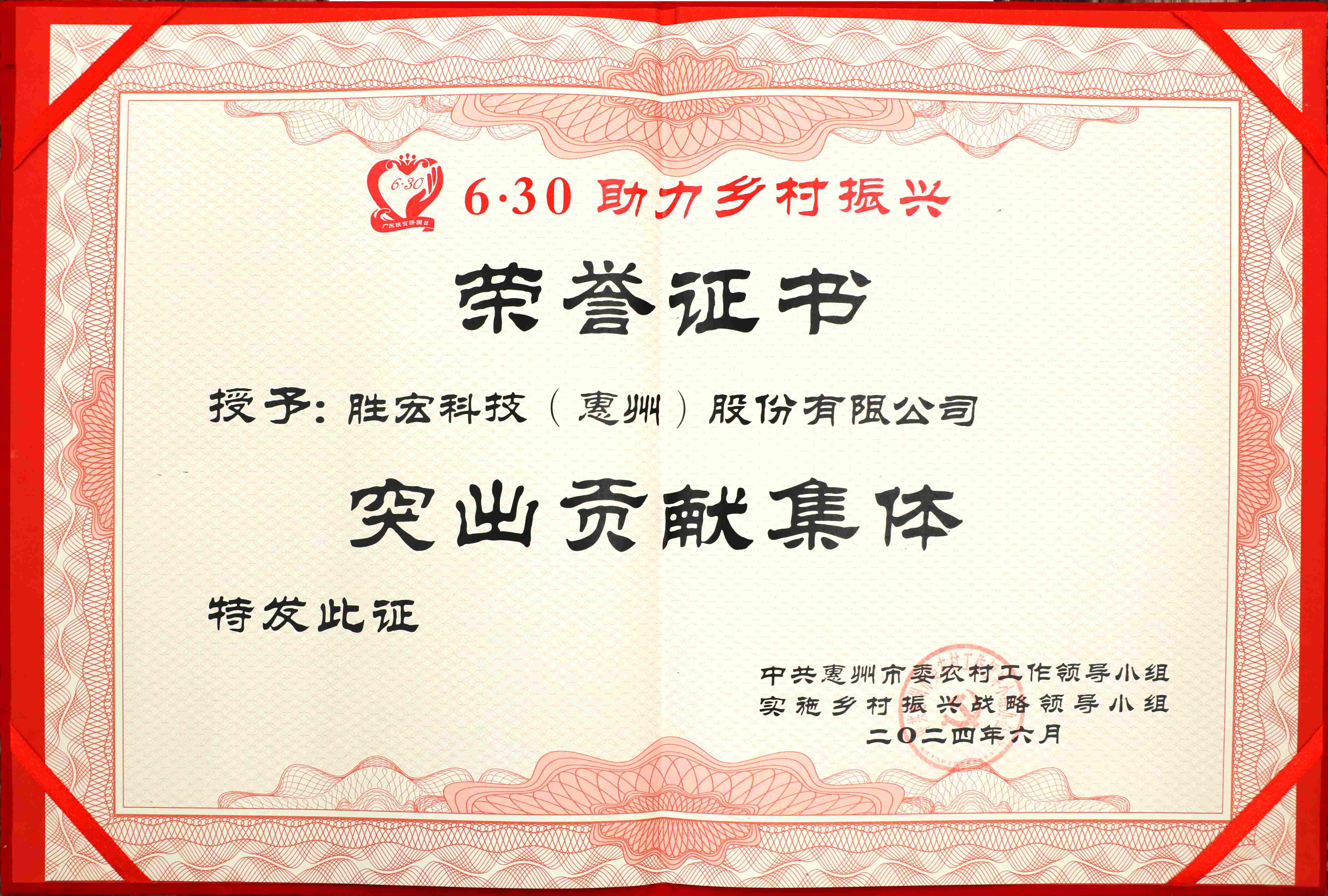 yabo.com科技荣获“惠州市2023年度‘6·30’助力乡村振兴突出贡献集体”奖