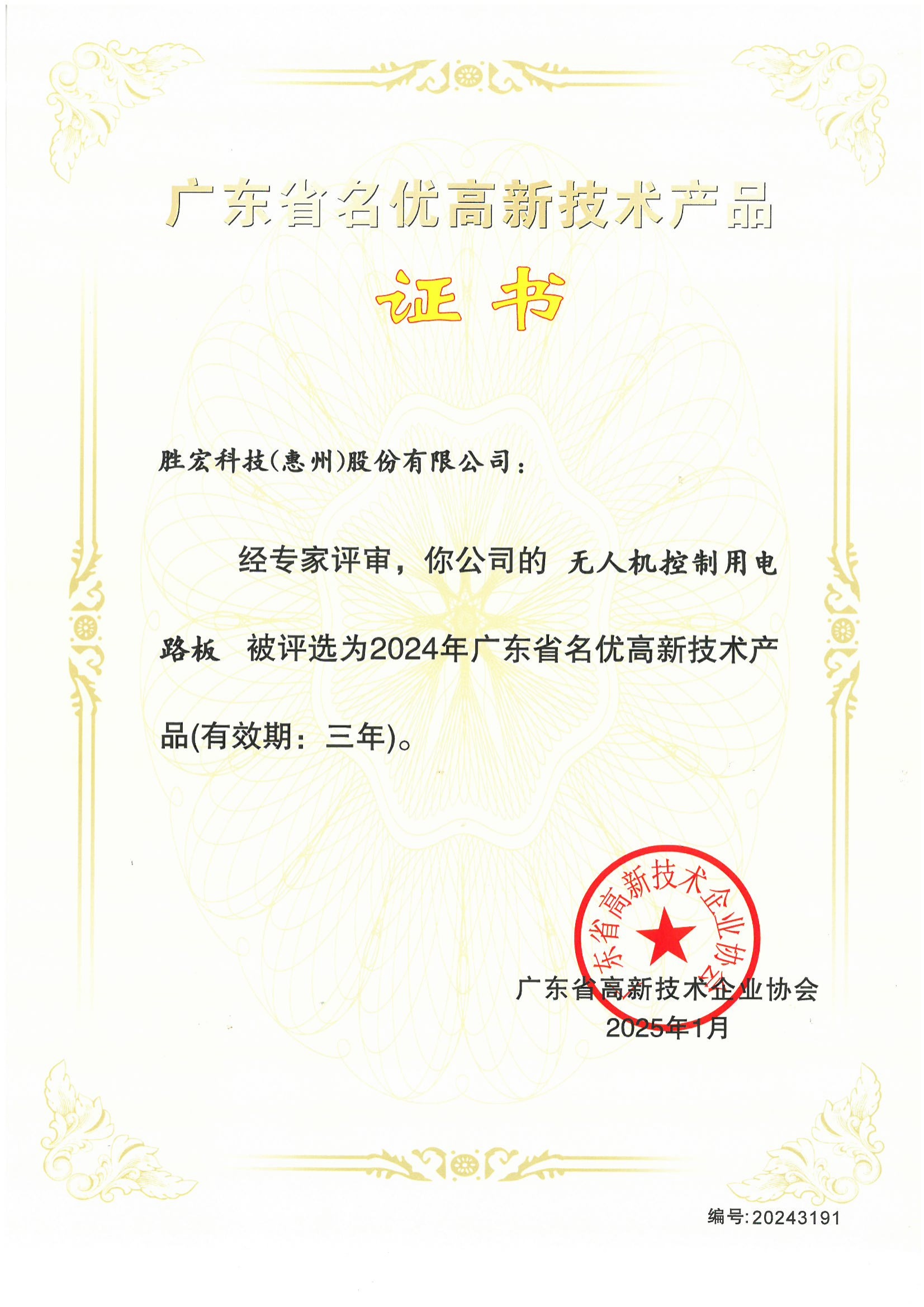 “无人机控制用电路板”高新技术产品证书